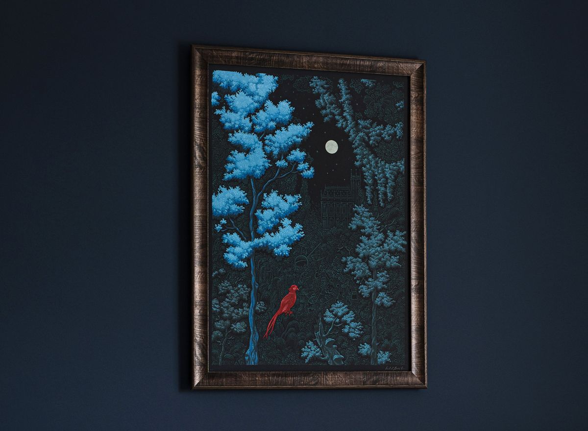 Jednu dobu se u nás ve Frame-it zdálo, jako by Michal Bačák nikdy nevytvořil nic jiného, než obraz Bažant ve Stromovce. Samozřejmě je to dost možná tím, že sídlíme v Praze 7 a lidé na Letné a Holešovicích sou lokální patrioti. Tenhle konkrétní bažant ale nakonec dolétl až do ložnice v pražských Dejvicích, ale to je od Stromovky taky jen, co by bažant dolétl, takže je to asi v pořádku. Po nějakou dobu to byl nicméně tisk, který se k nám k zarámování dostával s až téměř železnou pravidelností a překonal i jiné stálice rámování.