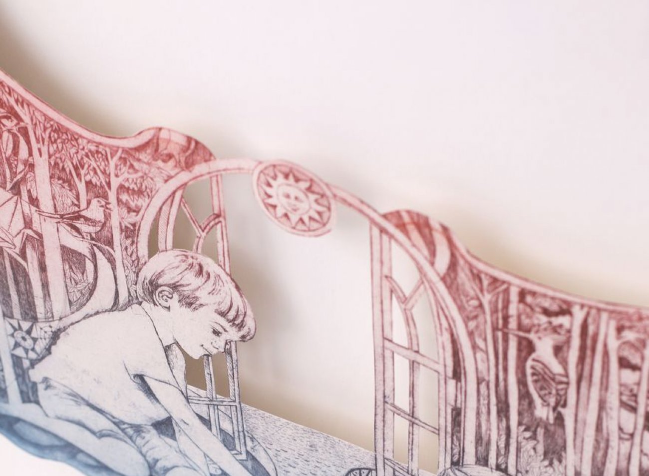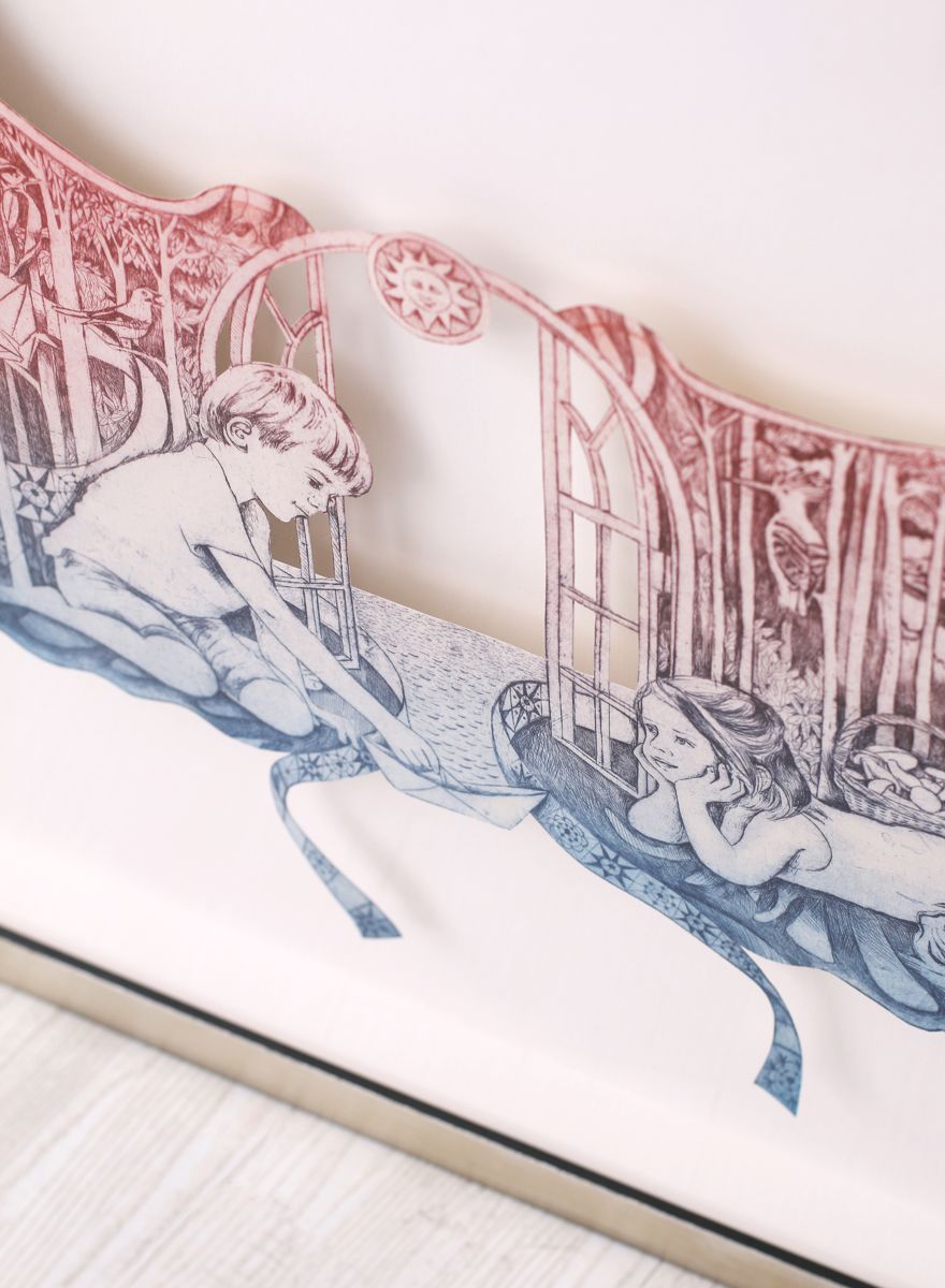 Míla Fürstová, Learning to Fly, lept a vyřezaný papír, 52 x 140 cm, 2018