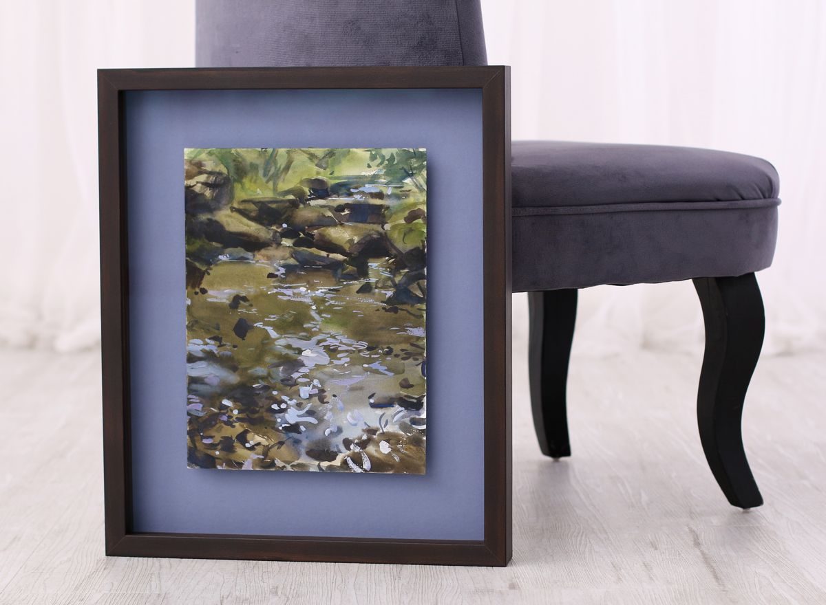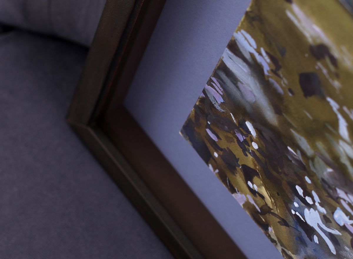 Obraz rušené ulice v Taijpeji jsme proto společně zarámovali do dvojice plovoucích rámů, které jsou spolu propojeny. Oba jsou v černé barvě s viditelnou strukturou dřeva. Vnitřní a výrazně subtilnější rám má navíc ponechanou horní pohledovou hranu v krásném přírodním dubu. Výsledkem je lehké a elegantní rámování s příjemným kontrastem.