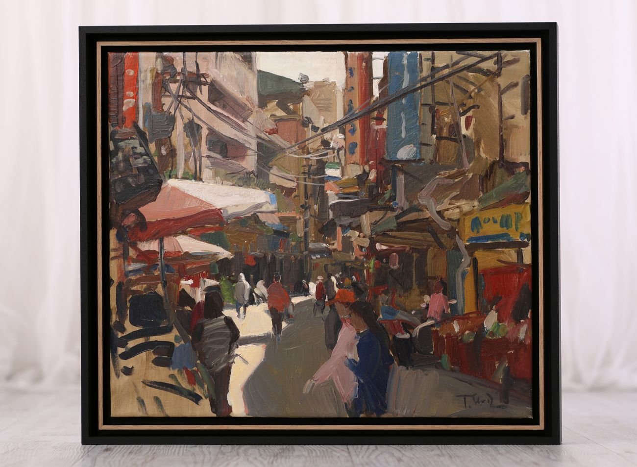 Honz Tomáš, Rušná ulice v Tajpeji, olej na plátně, 45x53cm, 2019