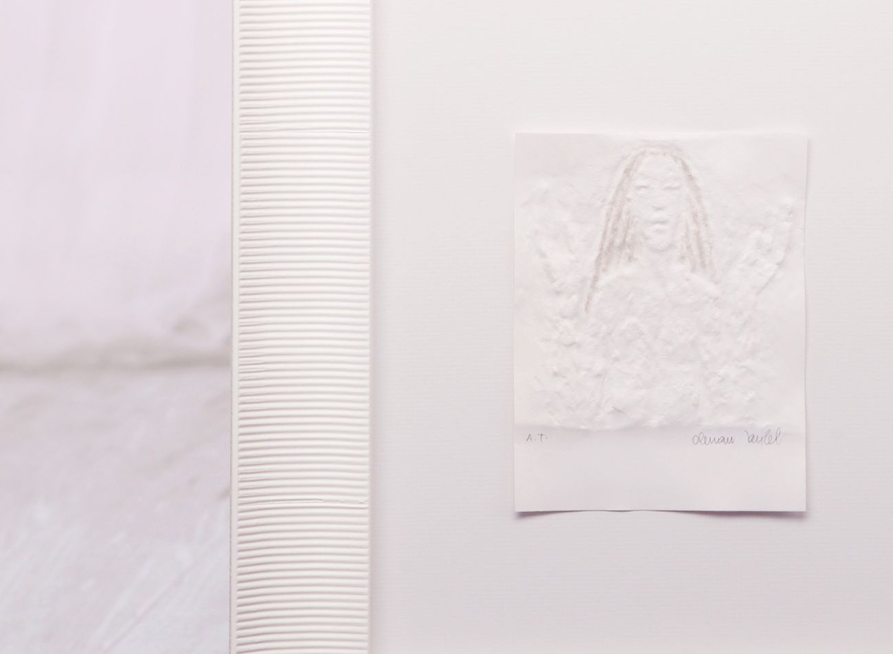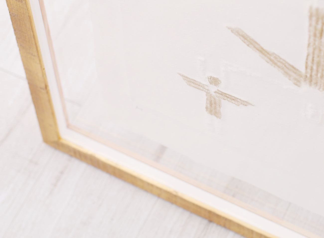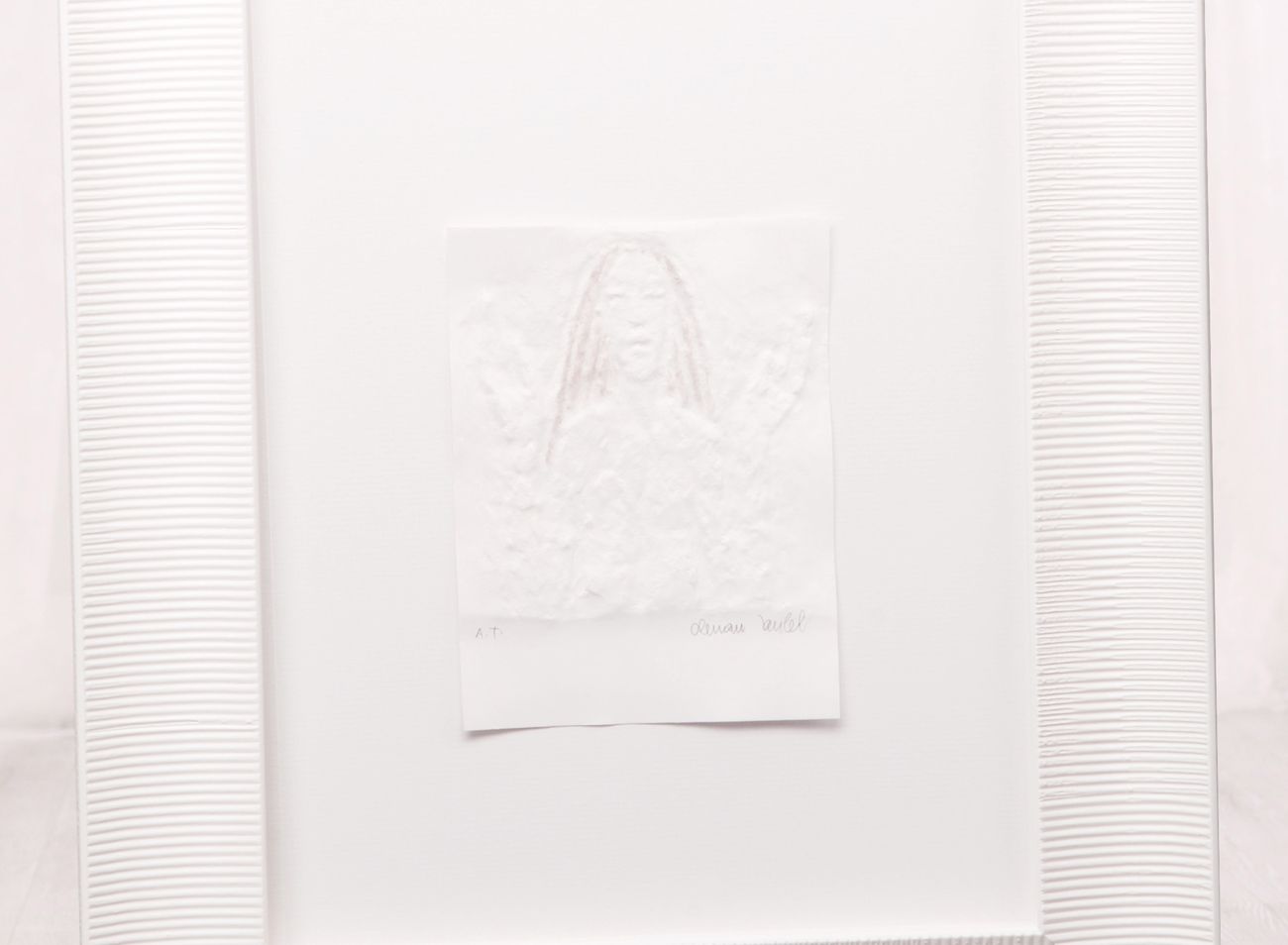 Prostorové rámování do zlatého elegantního rámu s bílým podkladem sluší nejen menším reliéfním tiskům, ale samozřejmě i těm mnohem větším. V porovnání jsou zde malá grafika Ruce s ratolestí s dvojnásobným reliéfním tiskem Andělé.