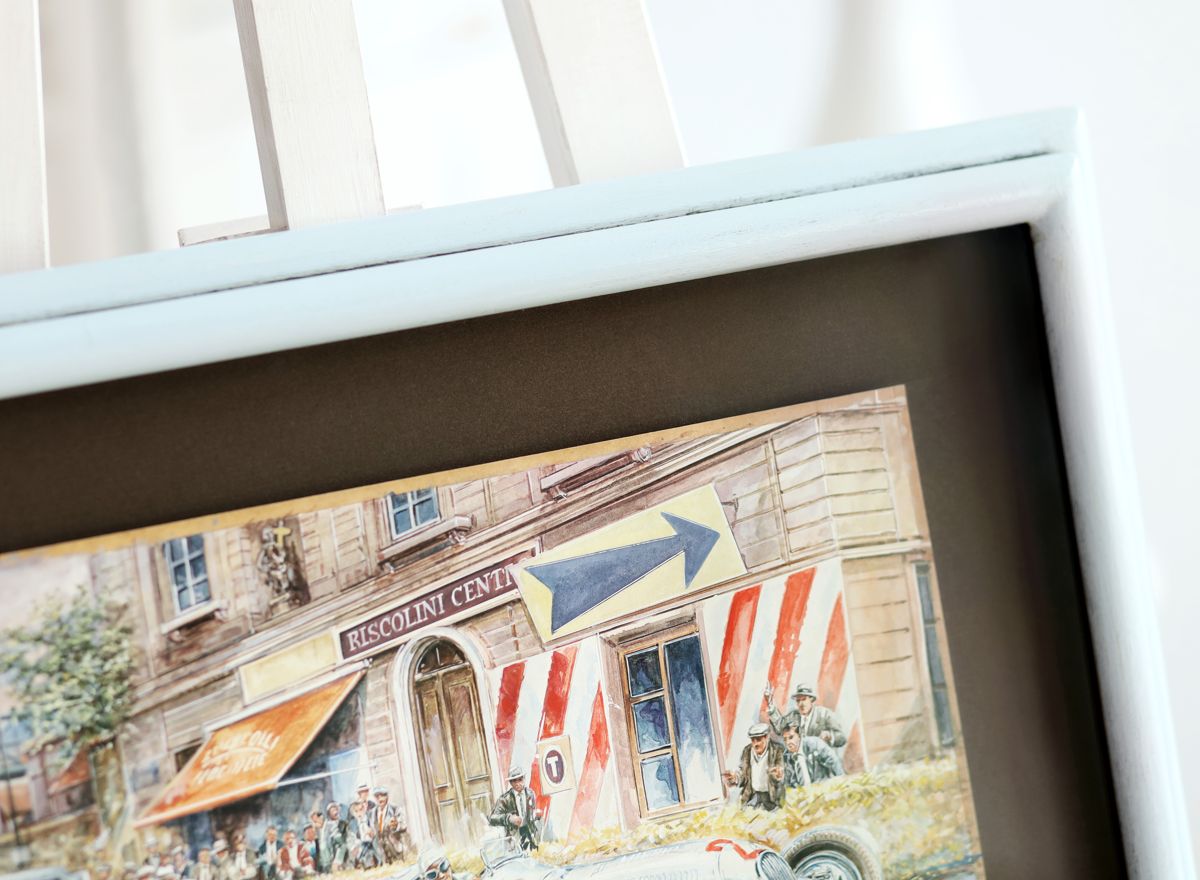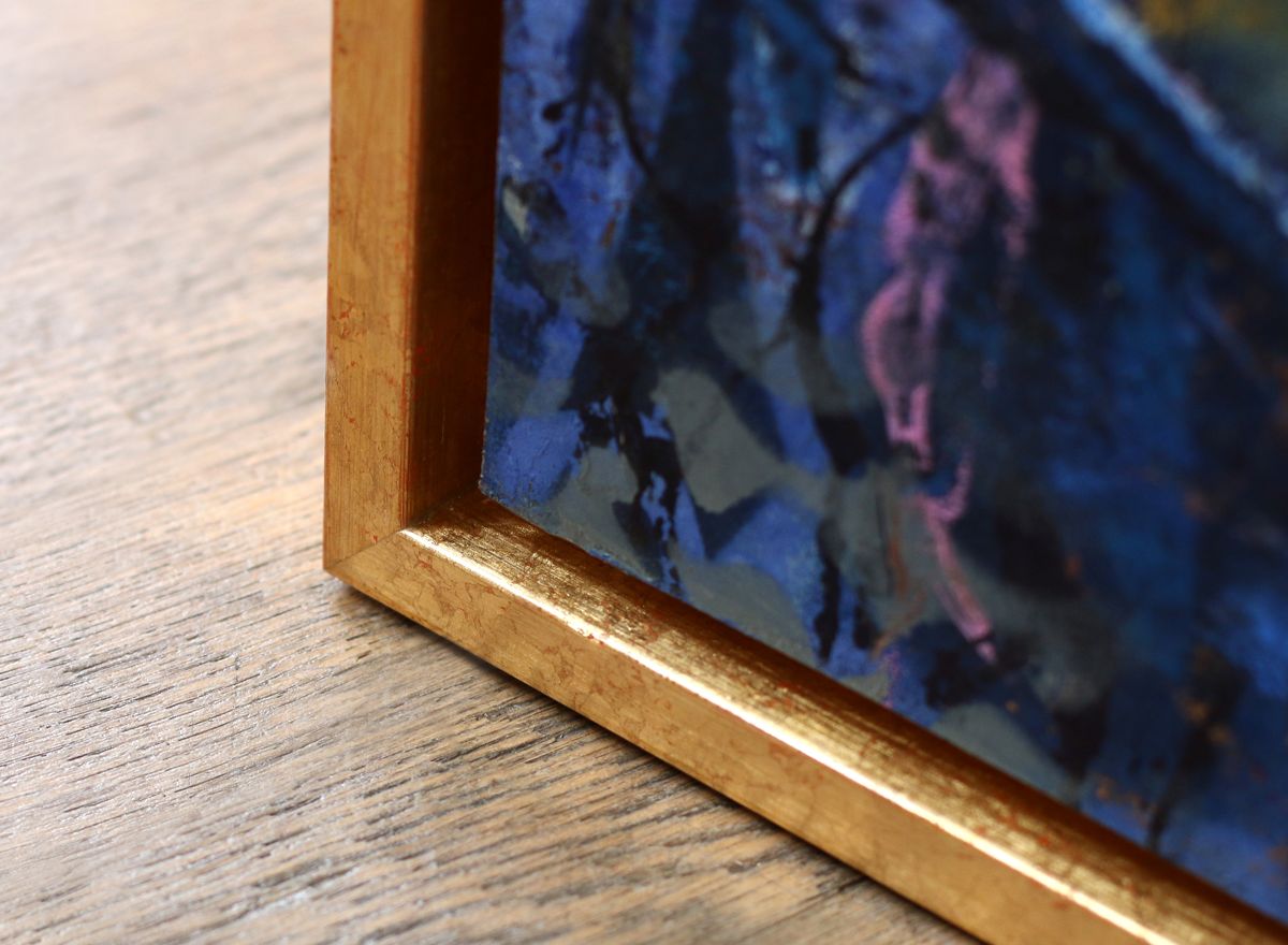 Obrazu jsme se postarali o vše důležité a vyrobili pro něj krásný zakázkový modelový rám s elegantním profilem a padnoucím patinovaným zlatem. Celý motiv se díky tomu rozzářil a je vidět, že se jedná o opravdu radostné setkání, než jen dosavadní jakési pošmourné a zamračené potkání, které bylo vidět dosud.