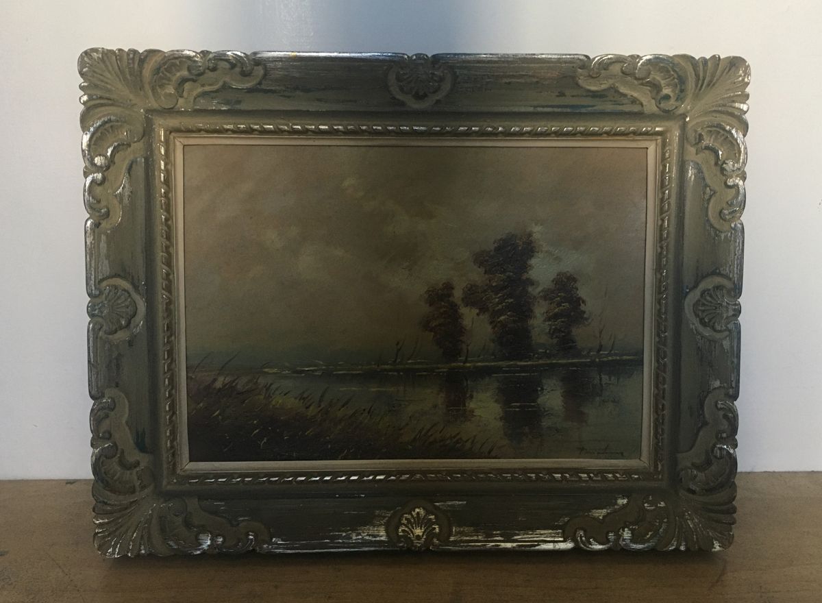 Malá a přitom moc pěkná krajinomalba s řekou a stromy je typickým příkladem. Od svého vzniku byla stále zarámovaná v jednom rámu. Ten byl sice poměrně kvalitní a ve velmi dobrém stavu, ale obrazu v žádném případě toto rámování neprospívalo a dále jej ztemňovalo a ubíralo kontrast. Samotný obraz byl ztmavlý nánosem mechanických nečistot.