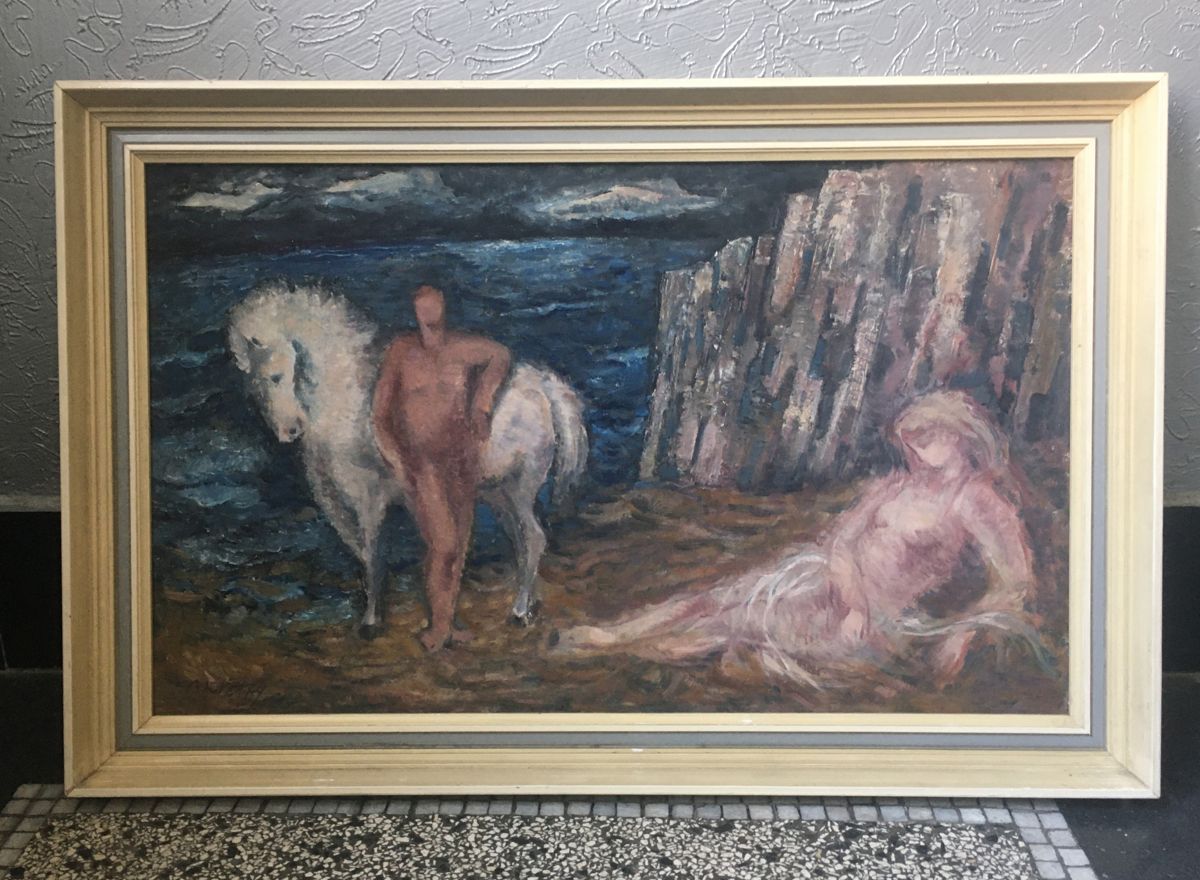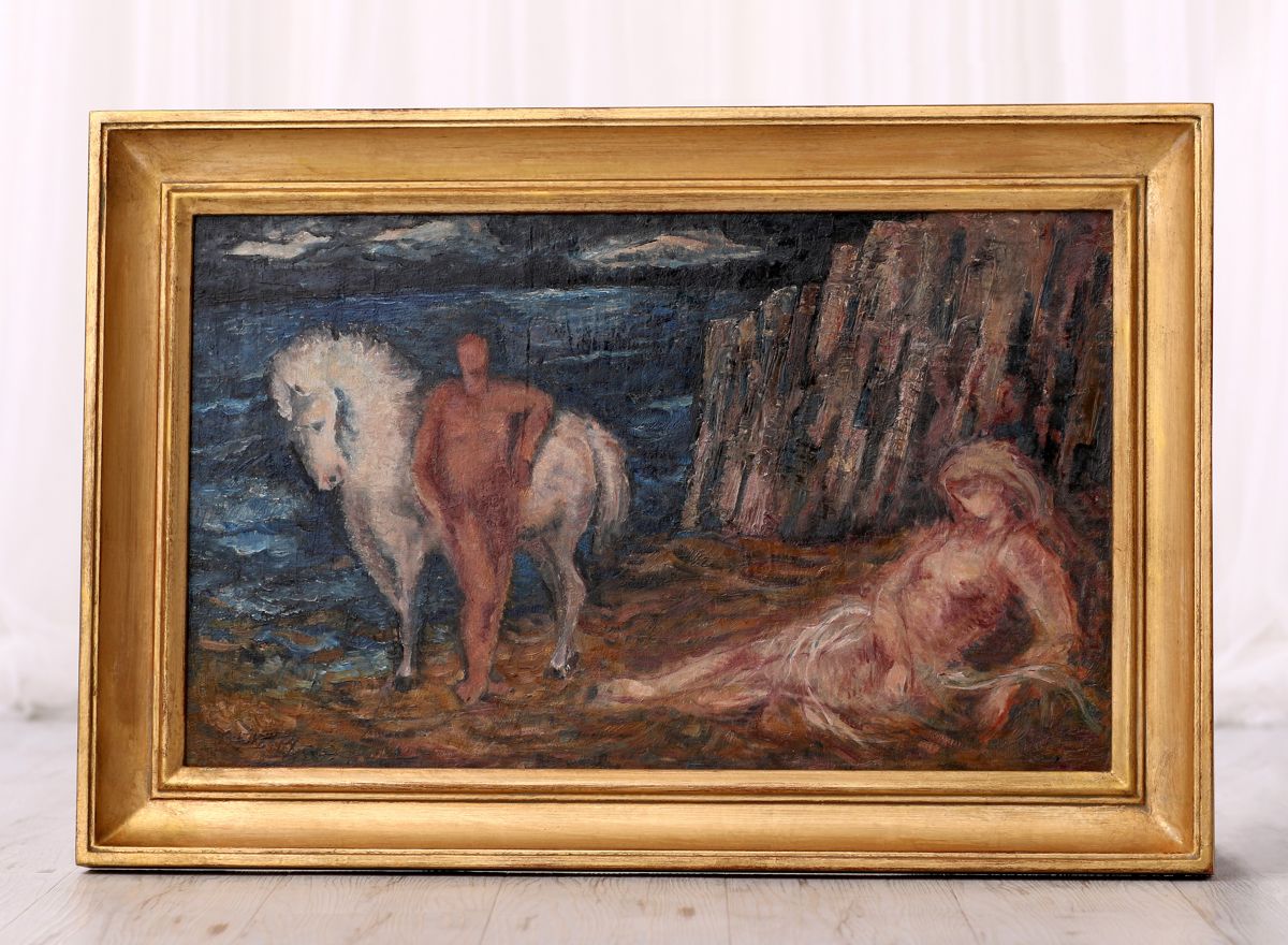 Bohumil Krátký, Setkání, olej na plátně, 66 x 40 cm | čištěno, restaurováno, nově zarámováno