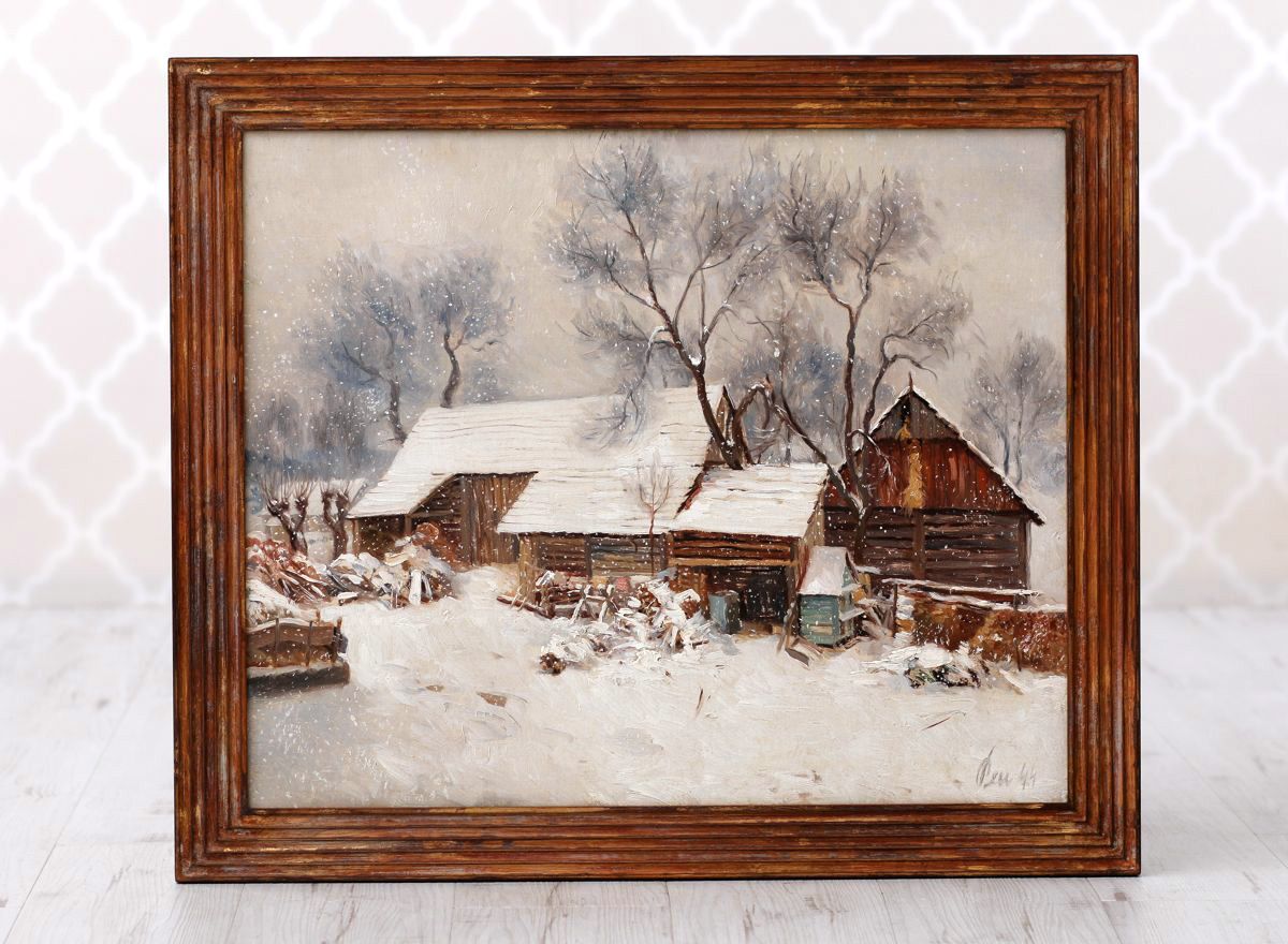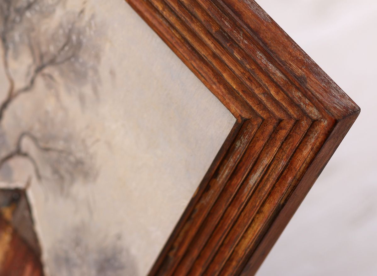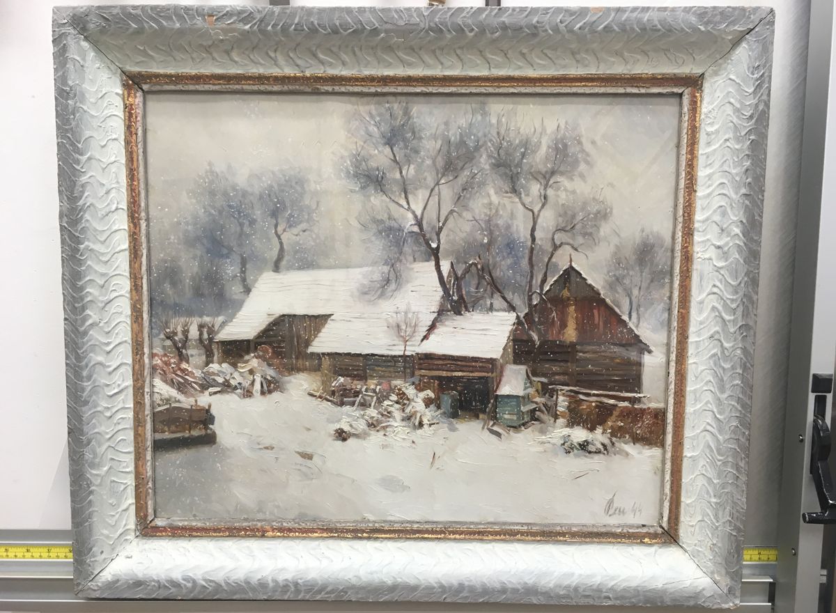 Moc pěkný olej na plátně od Bohumila Krátkého k nám přišel v obvyklém stavu – tedy celý zaprášený, ušpiněný s poškozenou malbou a nevhodně zarámovaný do příliš světlého rámu, který byl navíc na několika místech poškozený a téměř se rozpadal.