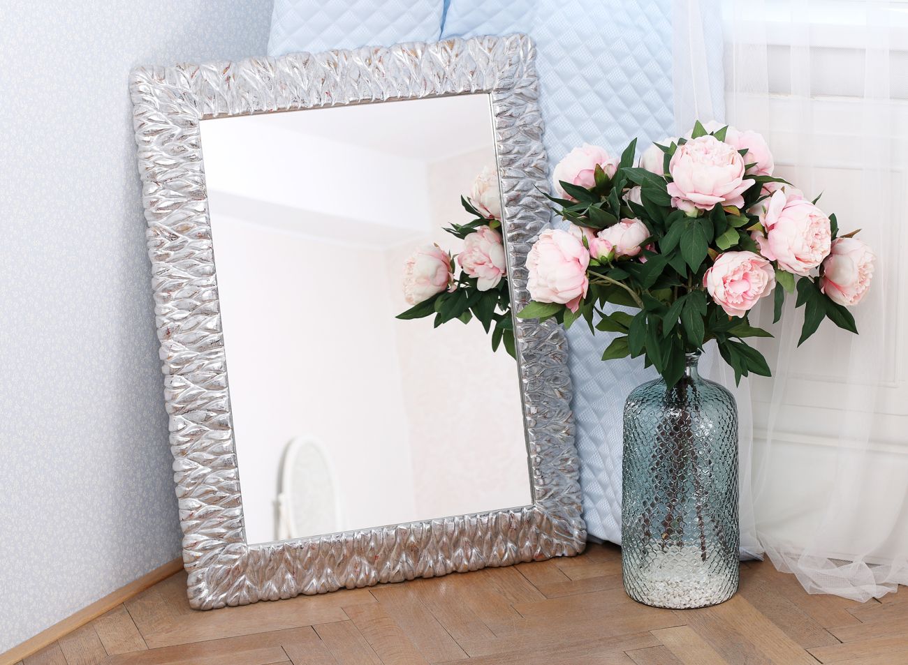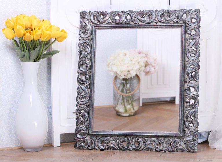 Stříbrný vyřezávaný rám na luxusní zrcadlo