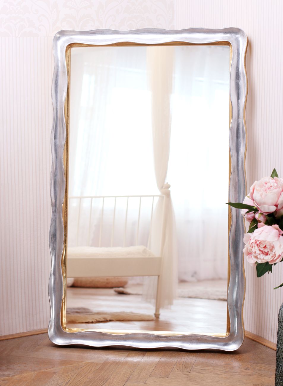 Právě takto vzniklo i stříbrné zrcadlo vytvořené pro designový showroom v Praze. Nejprve jsme vybrali správné rozměry a základní tvar rámu, následně vyzkoušeli několik kombinací stříbra a barevných podkladů, které jemným prodíráním a vzájemnou jedinečnou souhrou umocnily pocit hloubky a dynamiky v plamínkovém tvaru rámu. Díky tomu vzniklo zcela exkluzivní zrcadlo v rámu, který nikde jinde v Praze ani celé ČR neexistuje v žádném dalším kuse. Právě takhle, chápeme luxus my…